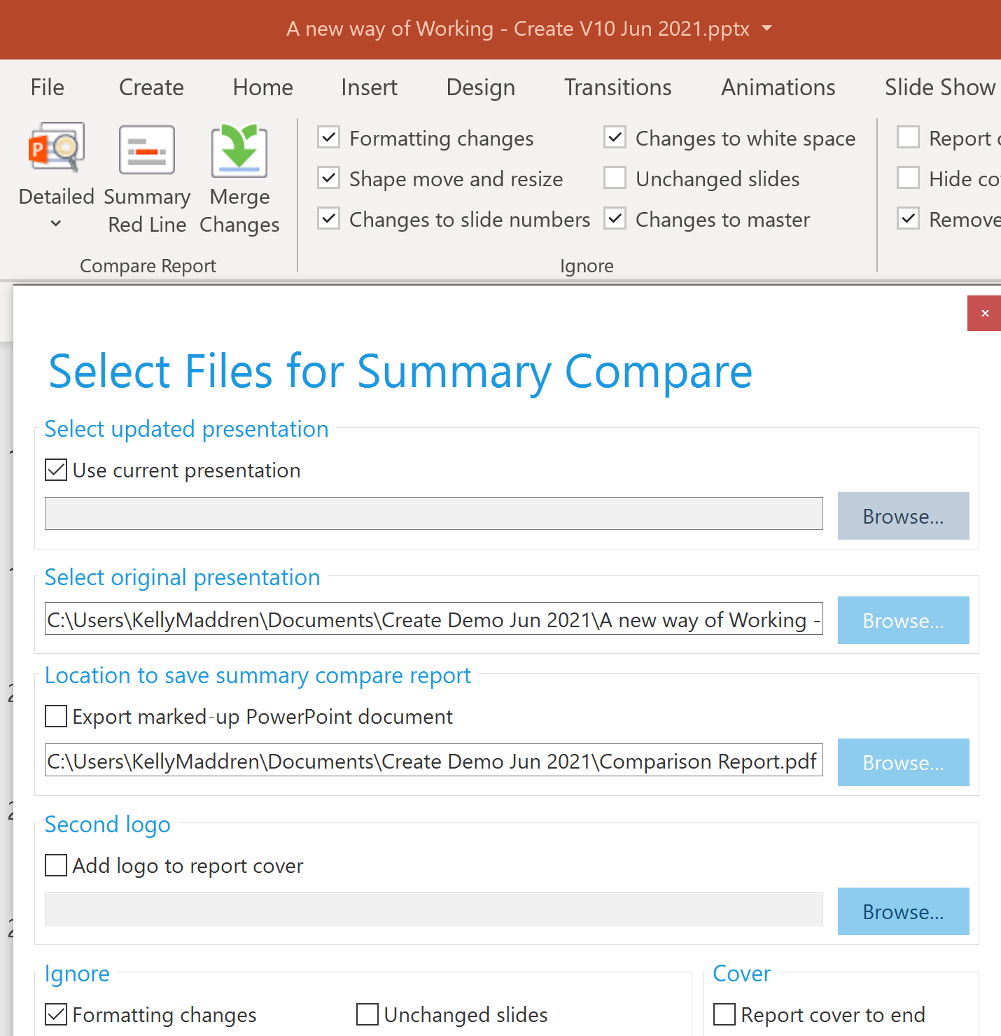 • Merge changes into a new presentation